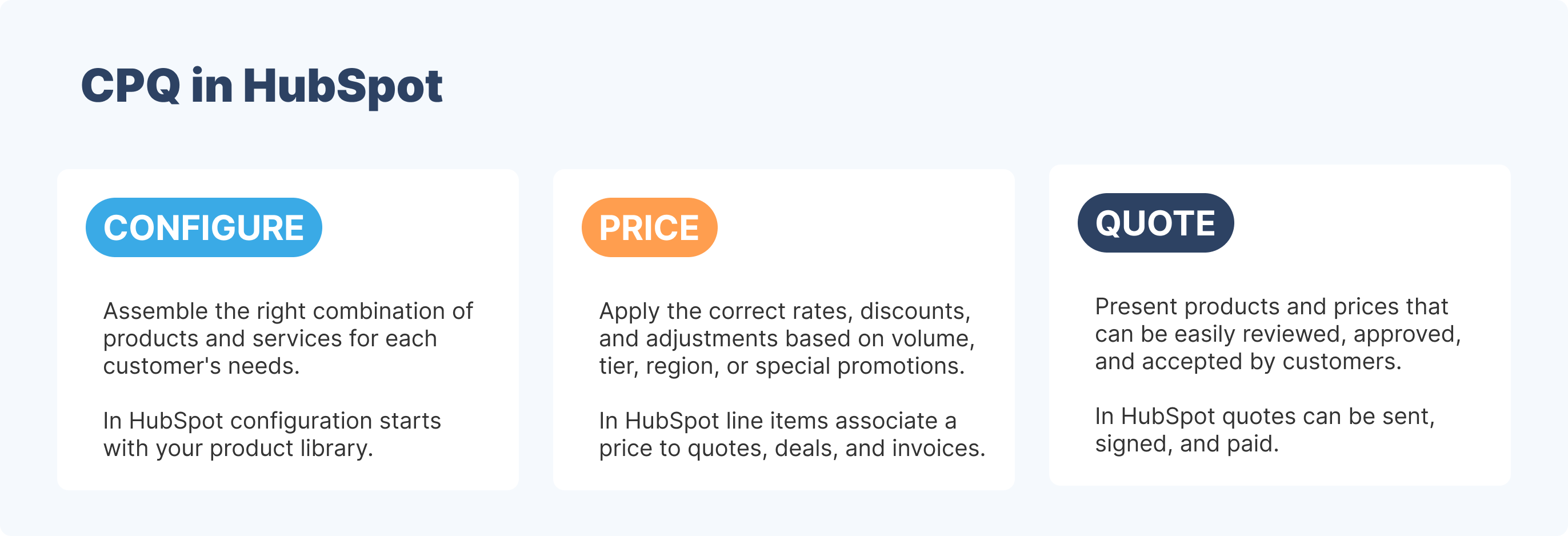 For businesses using HubSpot there are many Configure-Price-Quote (CPQ) solutions that can transform this painful process into a streamlined, error-free workflow that takes minutes instead of hours.