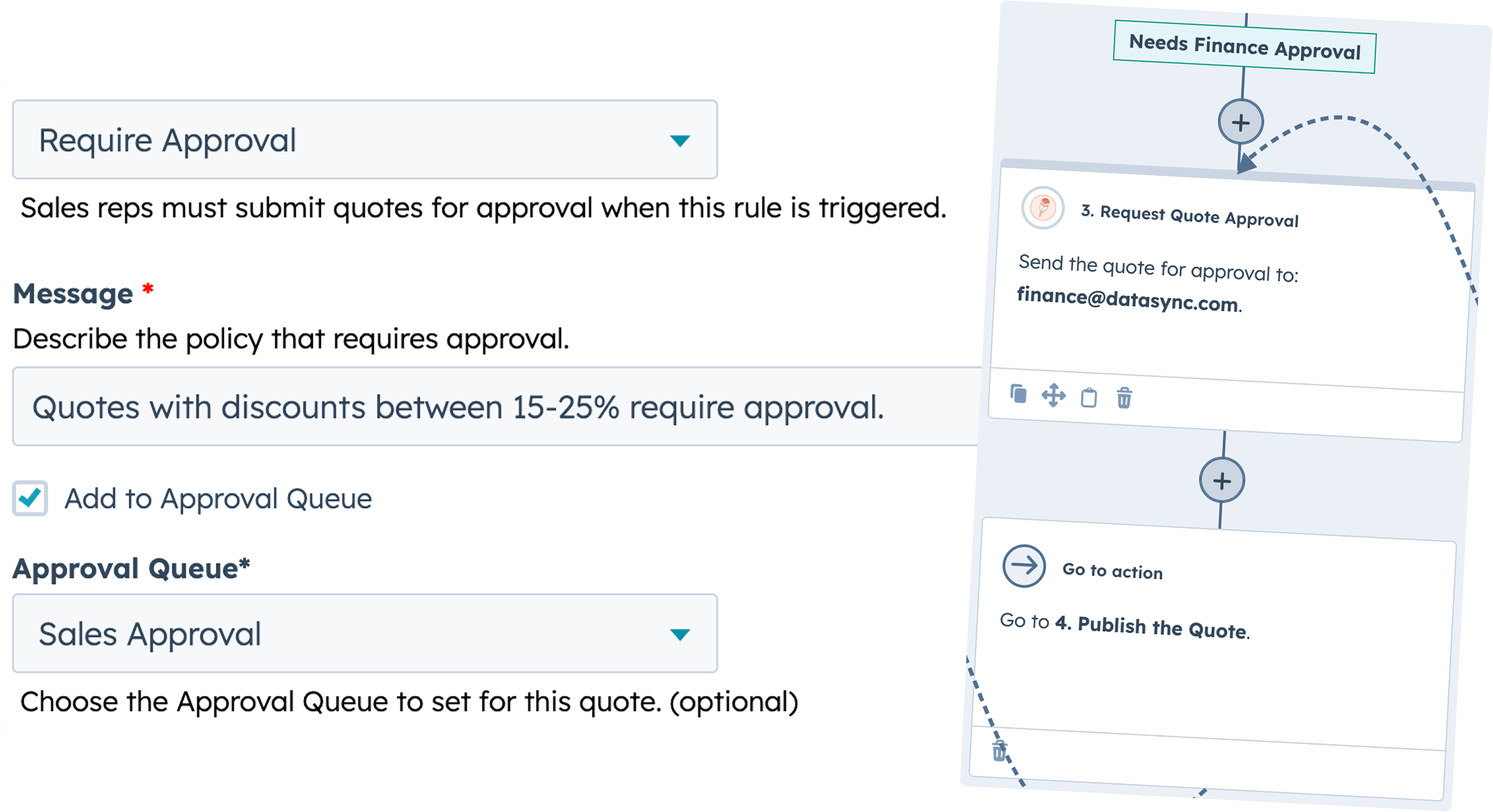 Advanced Approvals: Set up multi-level, conditional approval workflows based on any HubSpot data (discount percentage, margin, product mix, etc.).