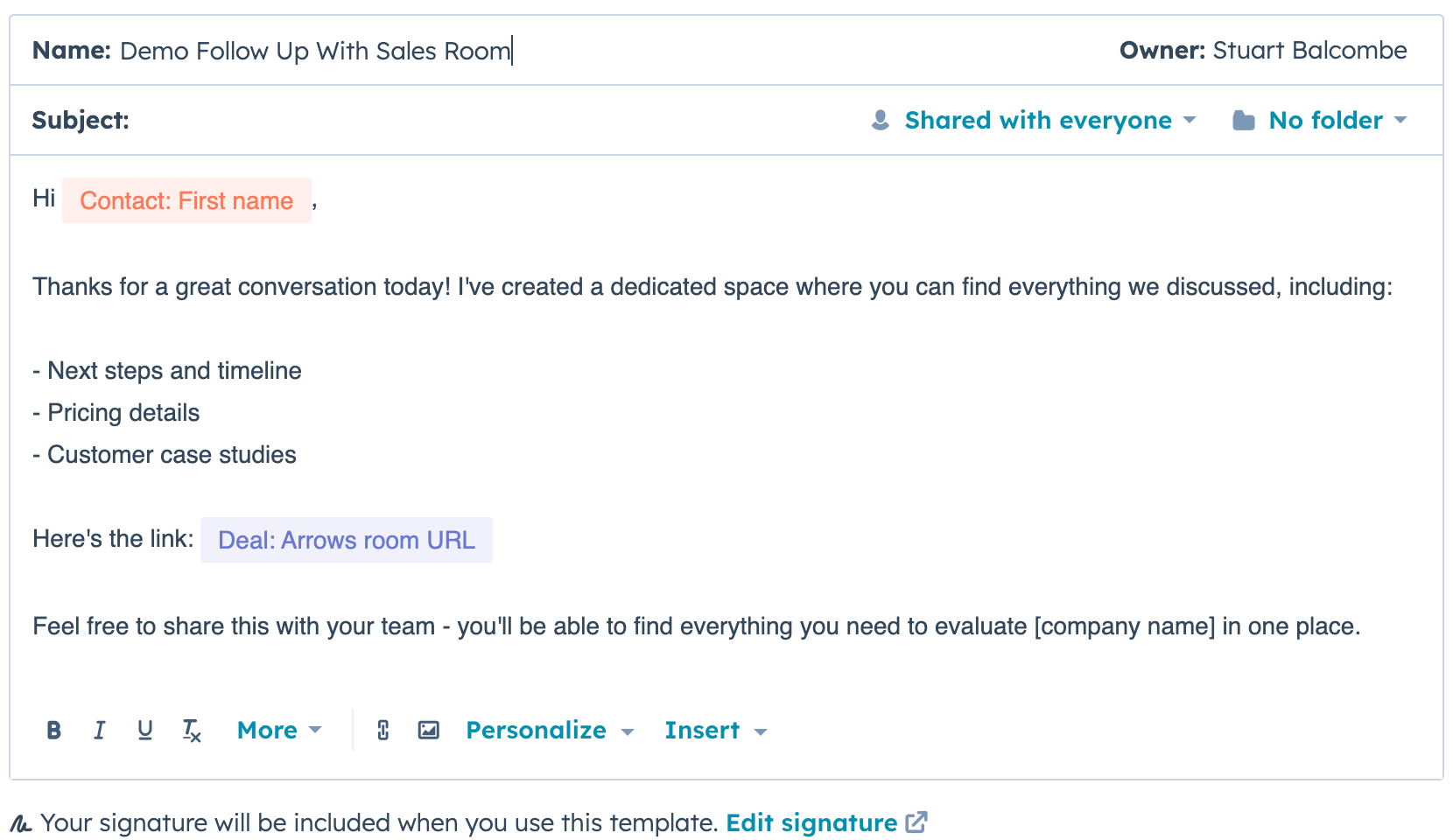 The step-by-step playbook for building deal momentum with Arrows sales rooms in HubSpot can be found at the bottom of the post.
