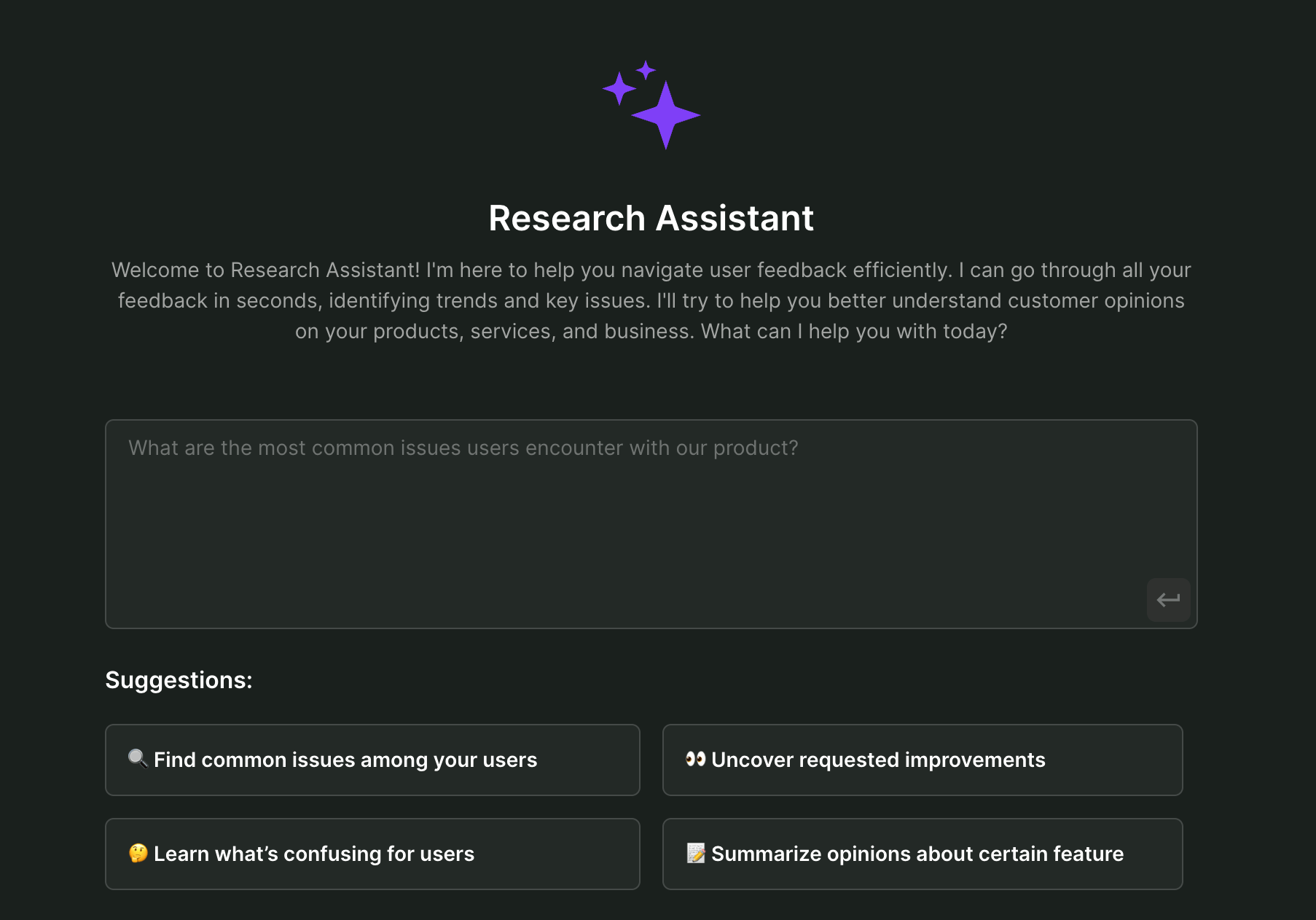 Effortlessly analyze, and act on qualitative feedback using Survicate’s research assistant and research hub to ask questions and organize your data to make smarter decisions faster.