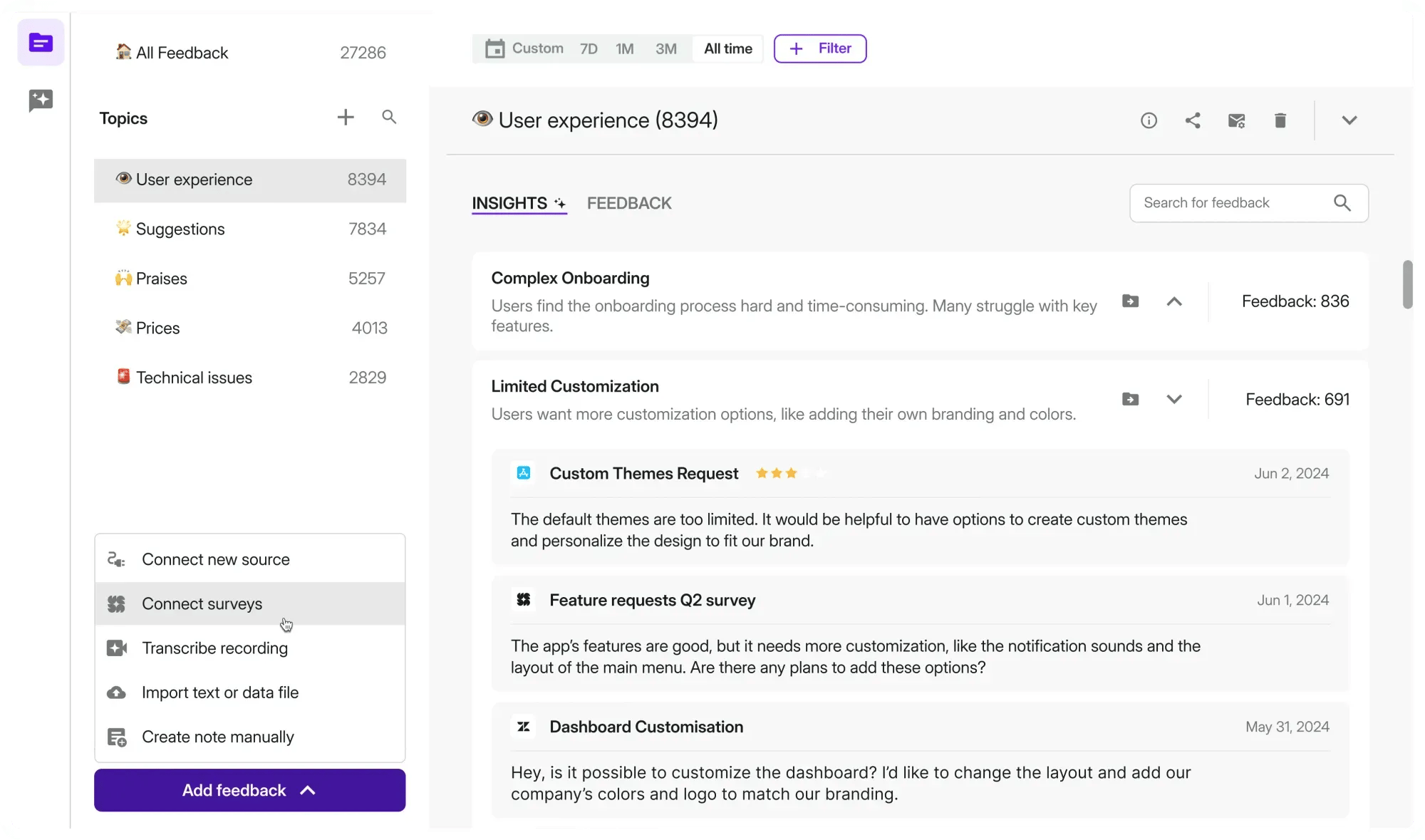 ❌ Without systematic customer feedback collection: you are forced to tradeoff making decisions based on anecdotes or spending countless hours conducting ad-hoc research that quickly becomes outdated.