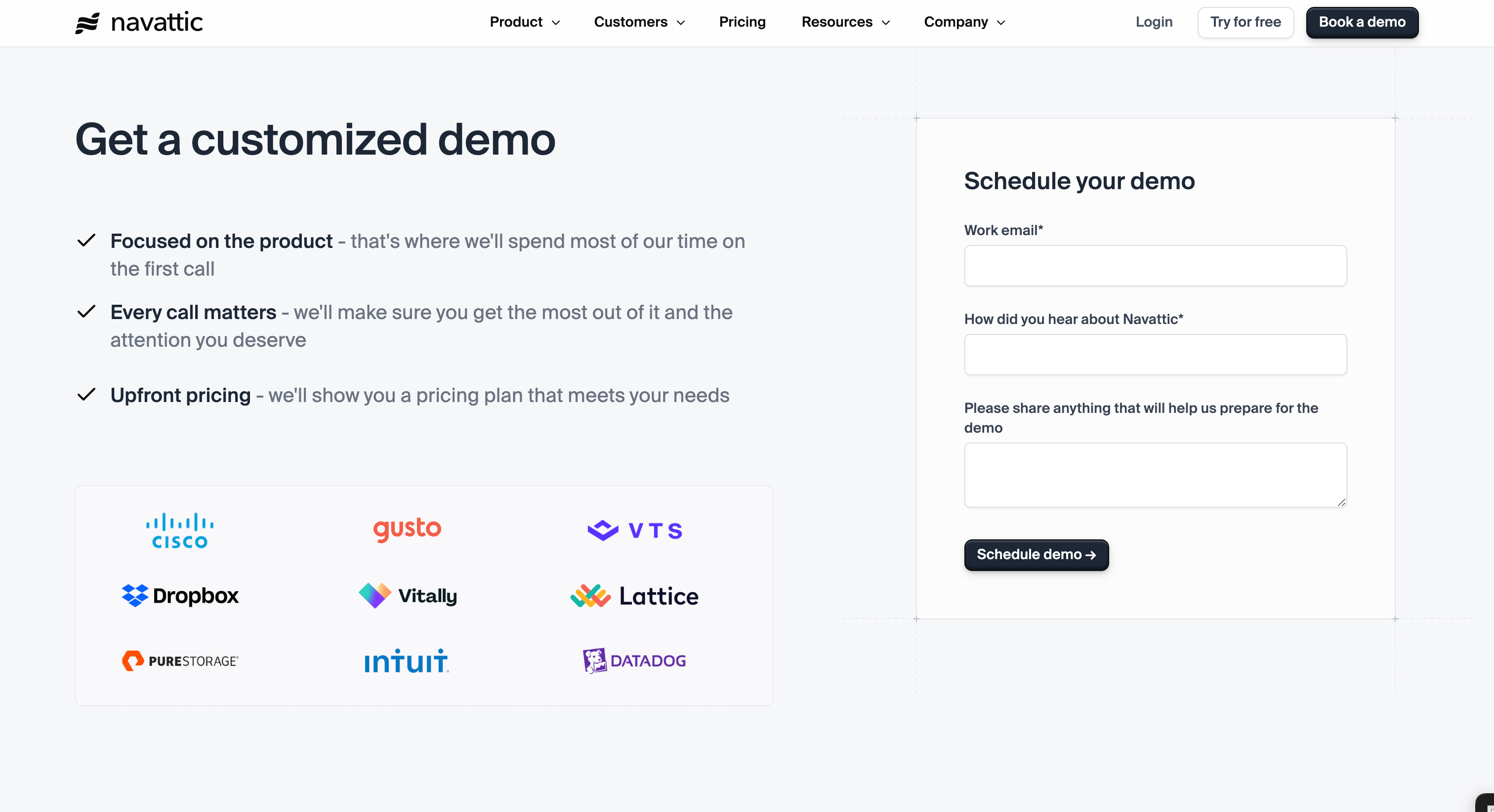 Let's see how to implement these demo booking principles. Whether you're using interactive demos or not, here's how to create a more buyer-centric experience based on Natalie’s experience: