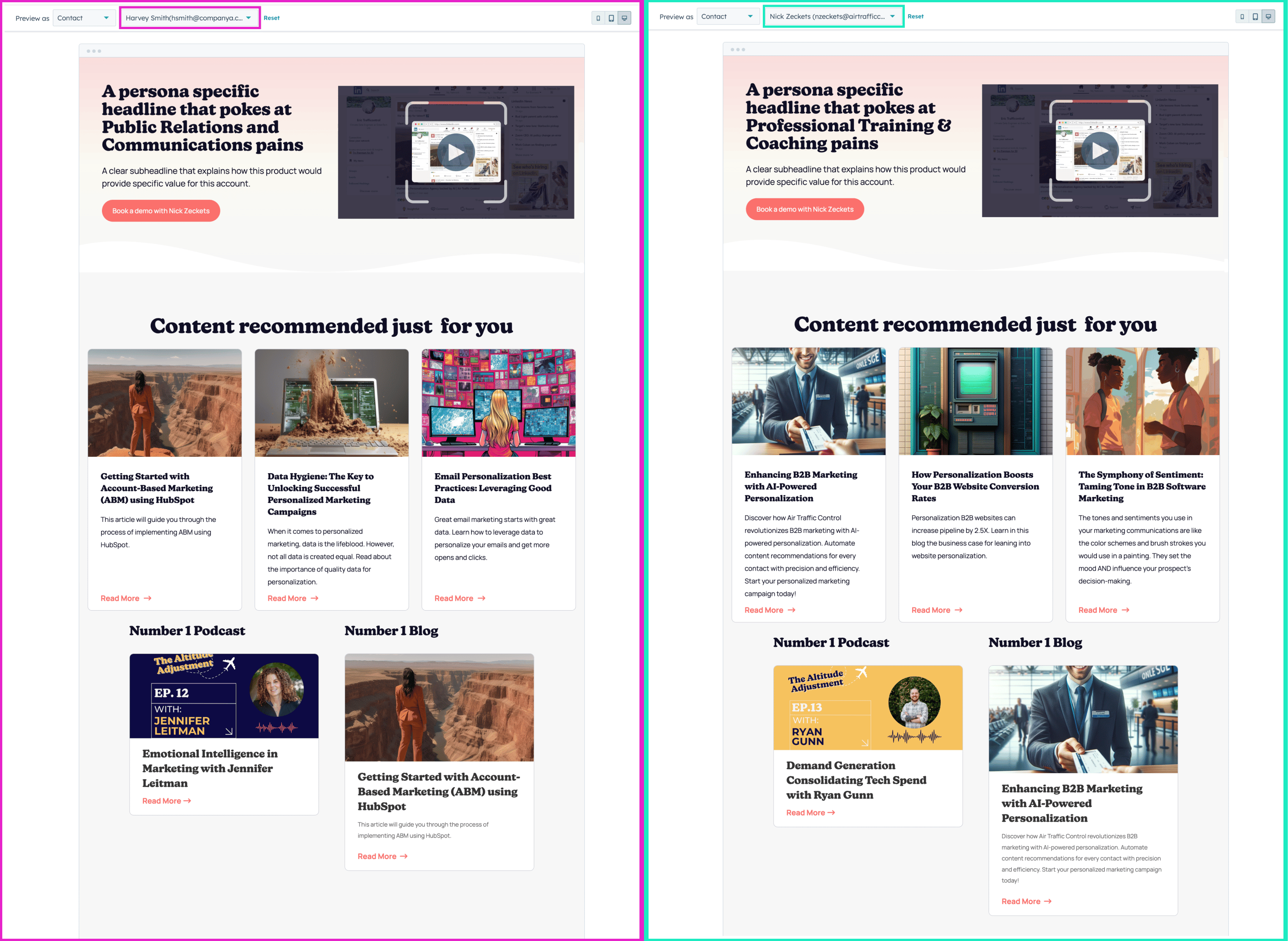 💡 Air Traffic Control will regularly update the content recommendations for a contact which will automatically update this page making it more engaging the next time a contact views it.By focusing on personalization and relevance in awareness-building efforts, we can create a compelling reason for your target accounts to continue to engage and lay the foundation for deeper interactions in the subsequent stages of our ABM campaign.